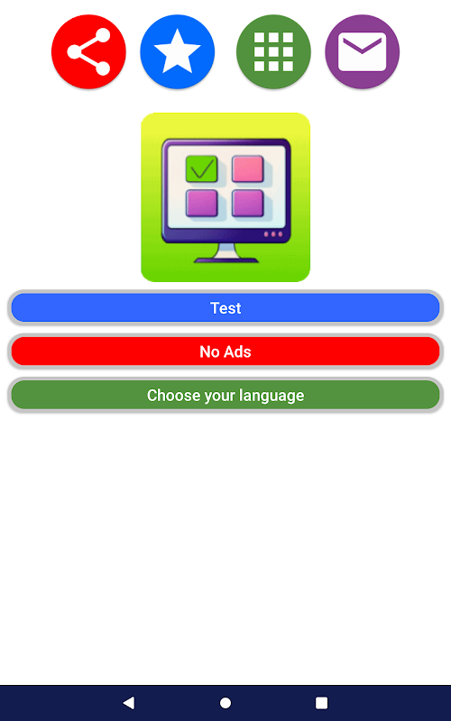 The Computer Test app is designed to help students and professionals prepare for various competitive exams and job interviews. This app tests your knowledge of computers through a carefully selected set of questions. You can choose from 100 available languages for the test and interface. It's a fun and easy-to-use educational game.