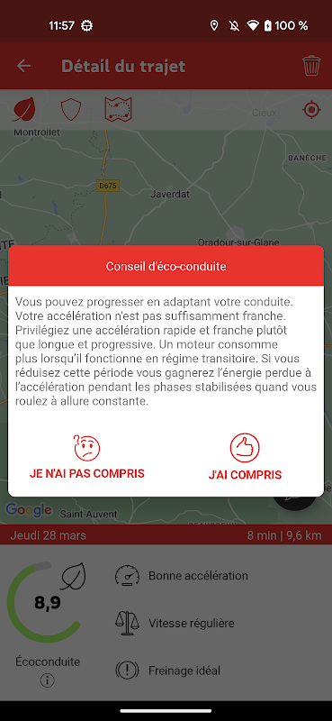- the dematerialization of the learning booklet with a summary of your distances traveled, the list of your journeys, the type of road environments used, etc.