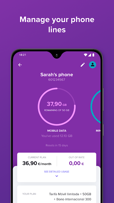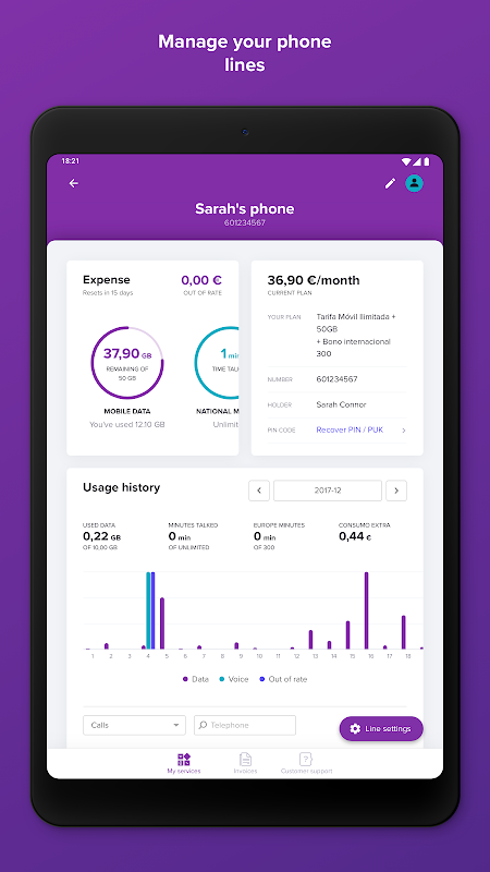 Do you want to manage the services you have with us? Now you can manage your Internet connections, phone lines and mobile plans, you will have them always available on your pocket.