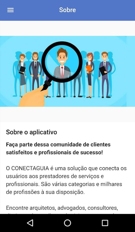 O CONECTAGUIA é uma solução que conecta os usuários aos prestadores de serviços e profissionais. São várias categorias e milhares de profissões à sua disposição.