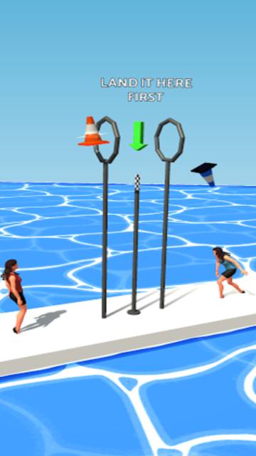 Launch the cone, make it flip as much as possible and ensure it lands on the pole!