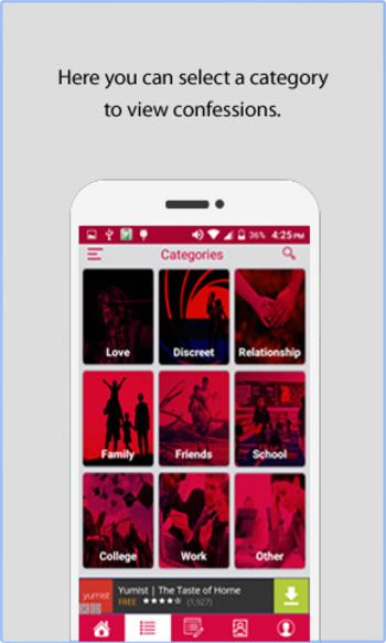 • You can choose a category that is best related to the kid of confession you are going to make, and simply type your confession, upload it, and you are done.