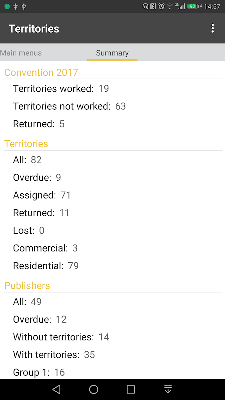 Application to help the territory servant manage the territories of the congregation of Jehovah's Witnesses, JW.
