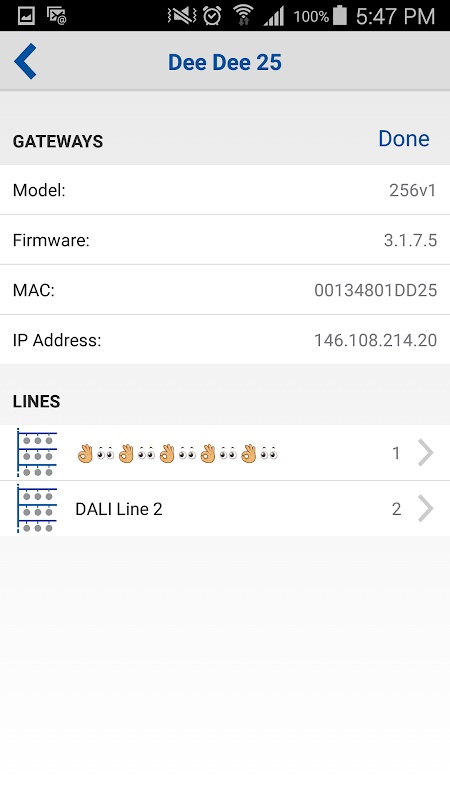 Configure and setup your app to work, to control the areas you prefer. Label and name area's once in the connecDIM cloud, such as Hallway, Meeting Room, or Kitchen, and all users app's will synchronise. Once synchronised through the cloud, the names are available and the lights can be controlled off line.