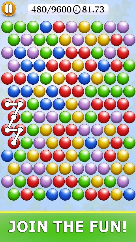 This is a game filled with challenges and fun. Connect bubbles one by one by moving your finger across the screen to make them disappear. Form groups of three or more neighboring bubbles of the same color to bust them. Aim for the longest connections to get bigger scores.