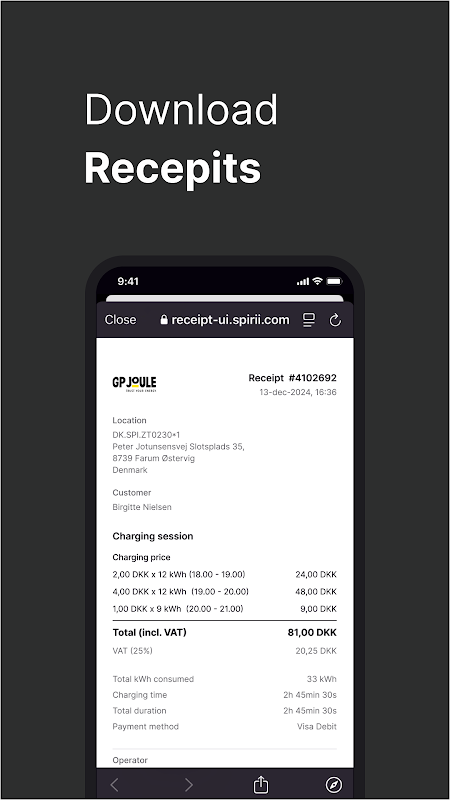 Bid farewell to your collection of charging cards! Enter your preferred payment method in the CONNECT Charge app and pay directly with your smartphone at public charging station. Download and view digital receipts in the app