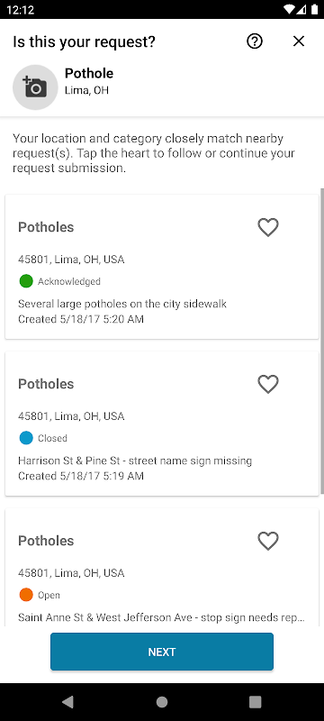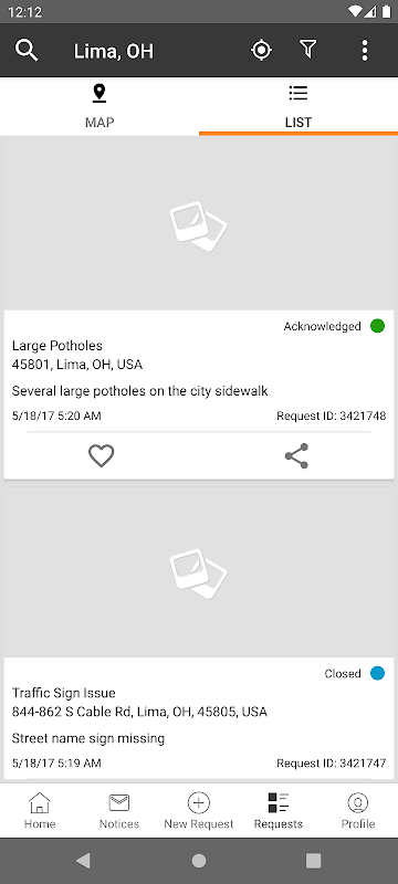 Submit non-emergency requests to City of Lima, & track their resolution!