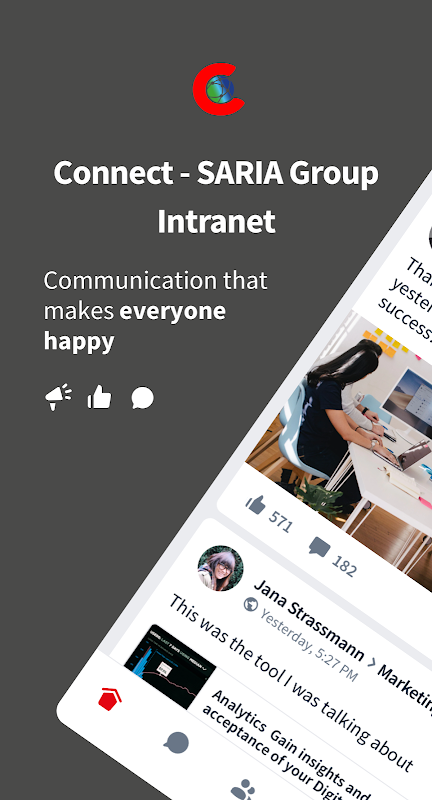 Connect - your intranet. This app is for all SARIA Group employees to get mobile access to our Group's internal information and communication platform. Do you need certain documents, templates or want to know who the right contact person is? With the help of Connect, the solution is quickly found. Whether you use your private or business mobile device, the flexible accessibility and the various interactive functions allow you to work quickly and easily with the platform from anywhere.