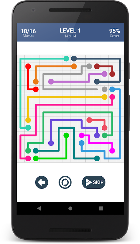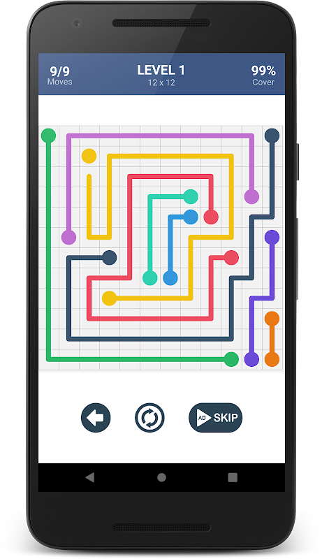 Connect matching colors with pipe or color line. Pair all colors, and cover the entire board to solve each puzzle in connect the dots. But watch out, lines will break if they cross or overlap!