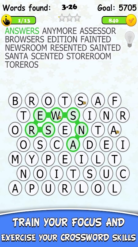 - 600+ levels that will keep your brain active. Each new level will present you with a different grid of words you have to find and as you advance you will improve your word skills and sharpen your mind.