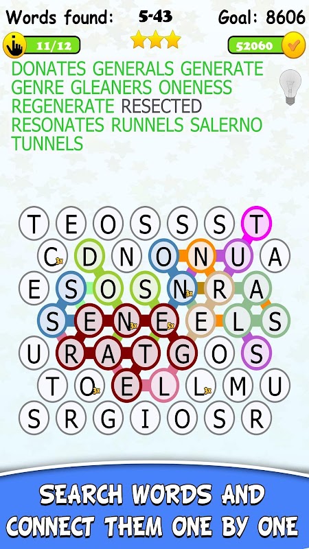 3. Press on the first letter and then sweep along a continuous string of letters to connect your word.