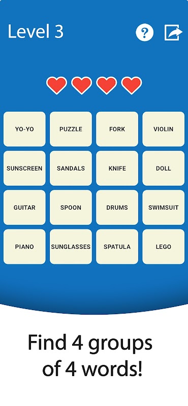 "Connections" is a captivating puzzle experience with features designed to appeal to all players. This word game adventure challenges your mind by asking you to find hidden links between seemingly unrelated words, themes or concepts. Each level presents a unique set of words that players must link to advance, making every puzzle a test of wit and insight.