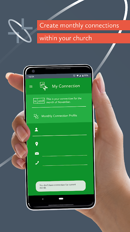 The Connections app introduces new intergenerational relationships in a church by randomly creating monthly connections within your church. On the first day of the month, the Connections App will alert you to your new connection for the month. The contact information for your connection is displayed on the app for you so you can contact and arrange a meeting any time during the following month. The connection plans are up to you – dinner, breakfast, coffee, snow cone, or whatever plan you make with your assigned connection.