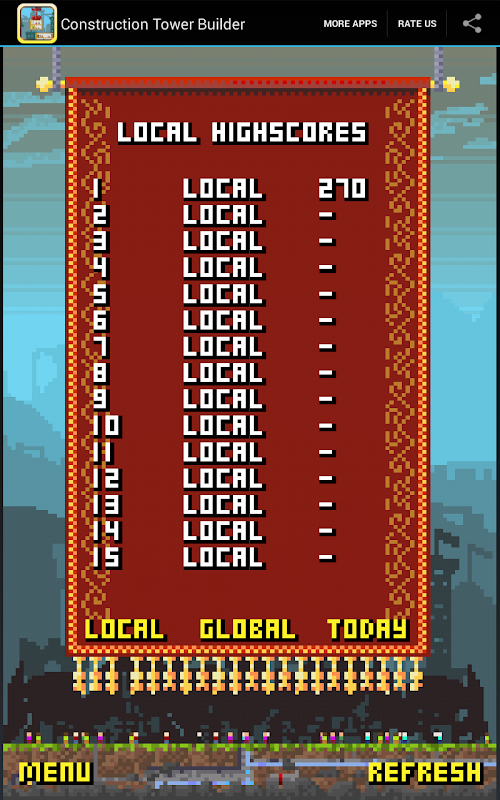 Build the highest tower which has ever been built with Construction Tower Builder. This is really simple but difficult game because of its very realistic physics. Goal of the game is building the highest tower by tapping on the screen.