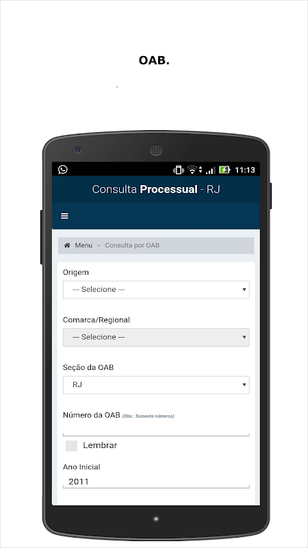 O Aplicativo RJ Consulta Processual foi construído para facilitar o acesso dos seus processos em celulares. Ideal para advogados, estagiários, servidores públicos e partes interessadas.