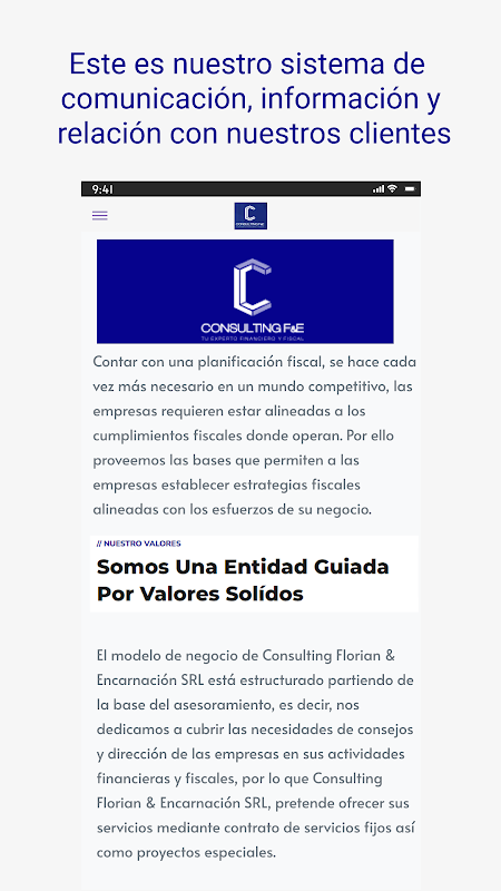 This is the app that we give to our clients to serve them. It is our customer service and relationship with our clients. We use a platform to create and control apps that we use to serve our clients and promote the business. This is our system of communication, information and relationship with our clients. We keep our clients informed of the work we do for them. We have functions to serve our clients in a personal and effective way. Our clients access their information securely and quickly. Each client has a private area where we have their information. This platform is a service of FOS, (www.fos.services) a leading company in customer service innovation.