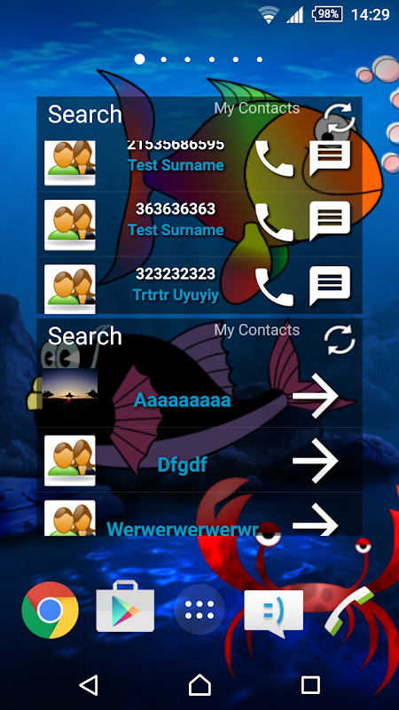 This is a simple widget that shows your phone contacts (all, favorites-starred or any other group, including WhatsApp and Viber contacts) as a scrollable list. You can call or send SMS to any of your contacts. For WhatsApp and Viber contacts you can start a call or chat.