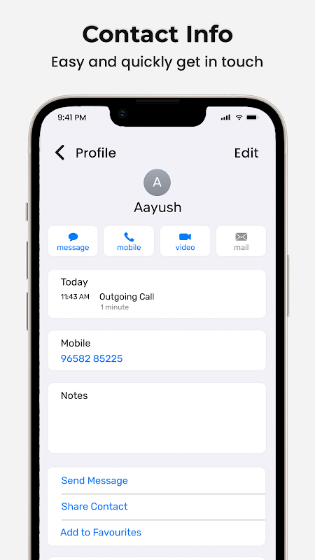 - Easily add contacts and edit information like phone numbers, emails, and photos