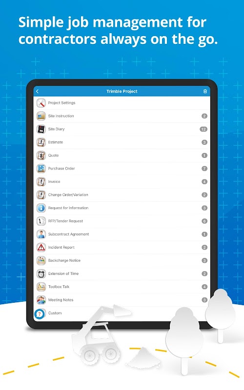 Get ready to start managing projects easier with our FREE invoice app and job management tool. Always have your business and project information in front of you with Contractor WorkZone. Invoices, estimates, change orders, site diaries, purchase orders, request for information, backcharge notice, RFPs and more are all included in both our free and paid versions.