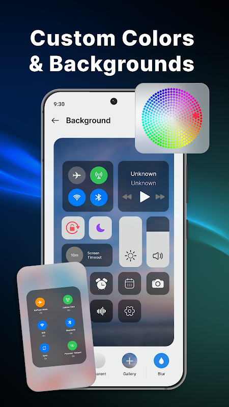 🖼️ Personalize the control center background with wallpapers, transparency, or your own gallery images.