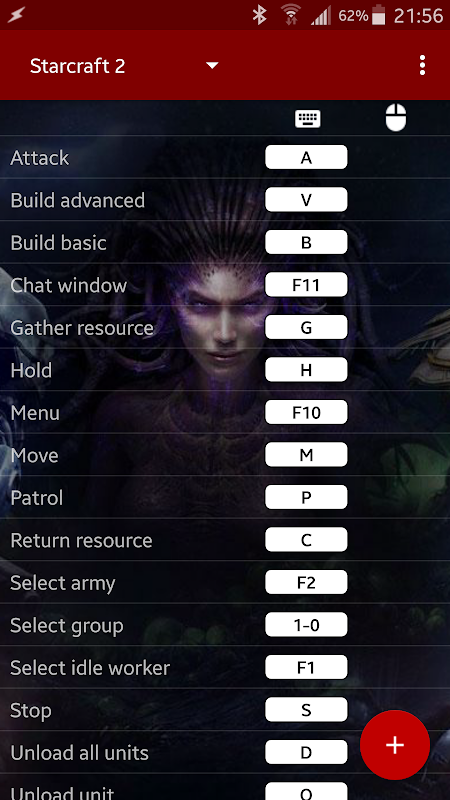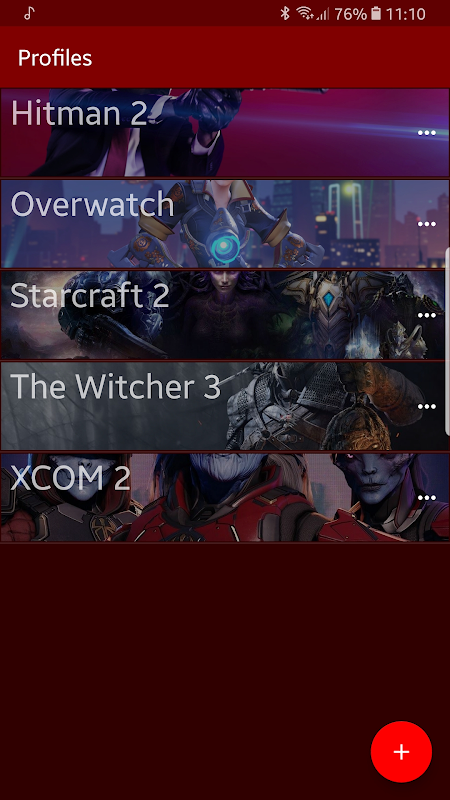 1) From "Profiles" screen, tap "+" to create a new game profile. Give it a name (ex. "Starcraft") and select up to 3 input devices you use with that game (ex. "Keyboard" and "Mouse").