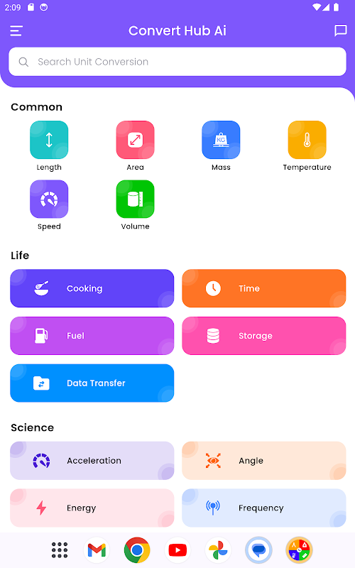 The user-friendly design, along with a comprehensive list of conversions, ensures that anyone can use this app effectively. From basic day-to-day conversions to advanced scientific calculations, Convert Hub Ai is the only tool you need!