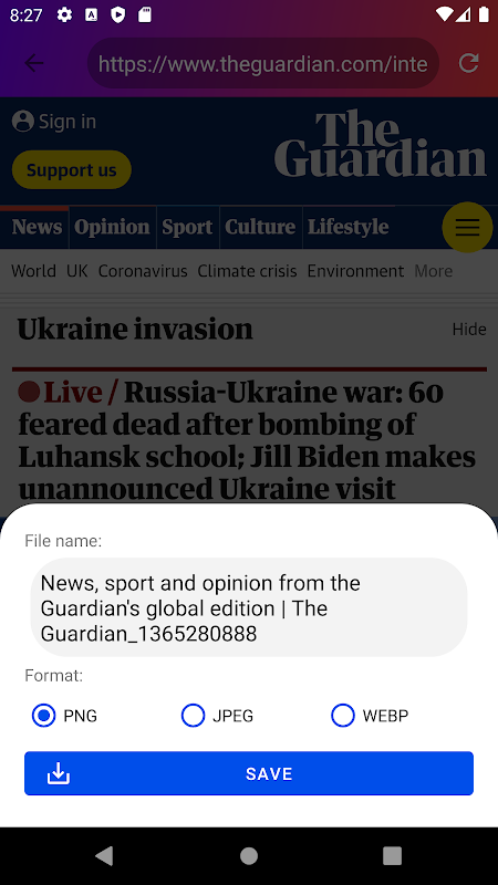 Convert your web page to png, jpeg or webP