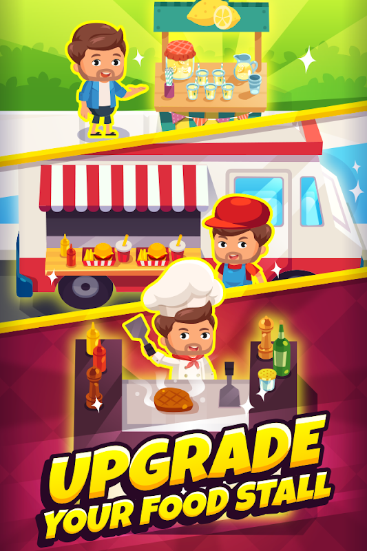 - You can always tap to attract more visitors. Even further, you can recruit foodie crews to assist you in your stall and gain more cha-ching for you: recruit junior chef, waiter, musician… all is under your tap.