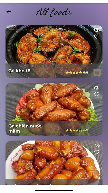 The application has many recipes available from many parts of the world
