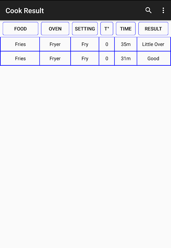Just enter what you cooked, the oven type, the oven setting, the temperature, the time and the result and voila! If it was a little bit off, next time you cook it you'll know what to change to make it how you like it!