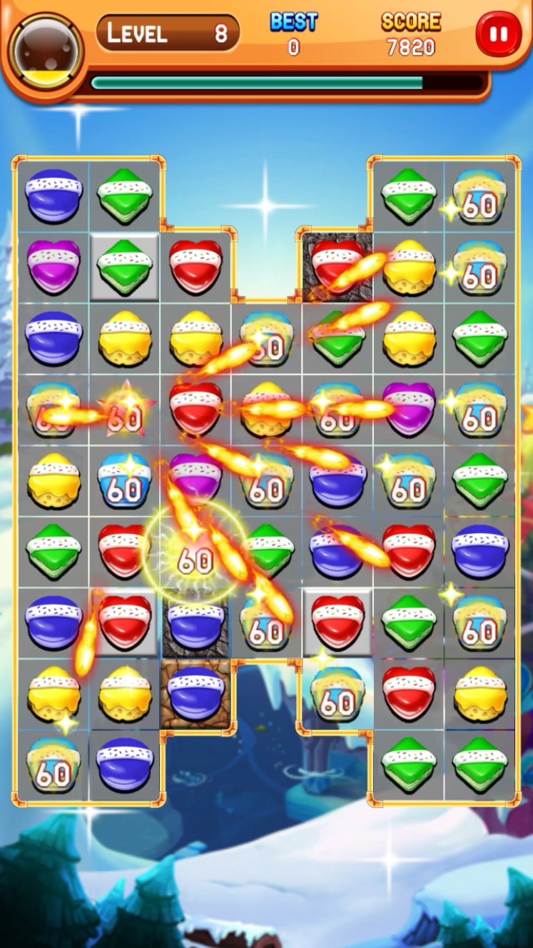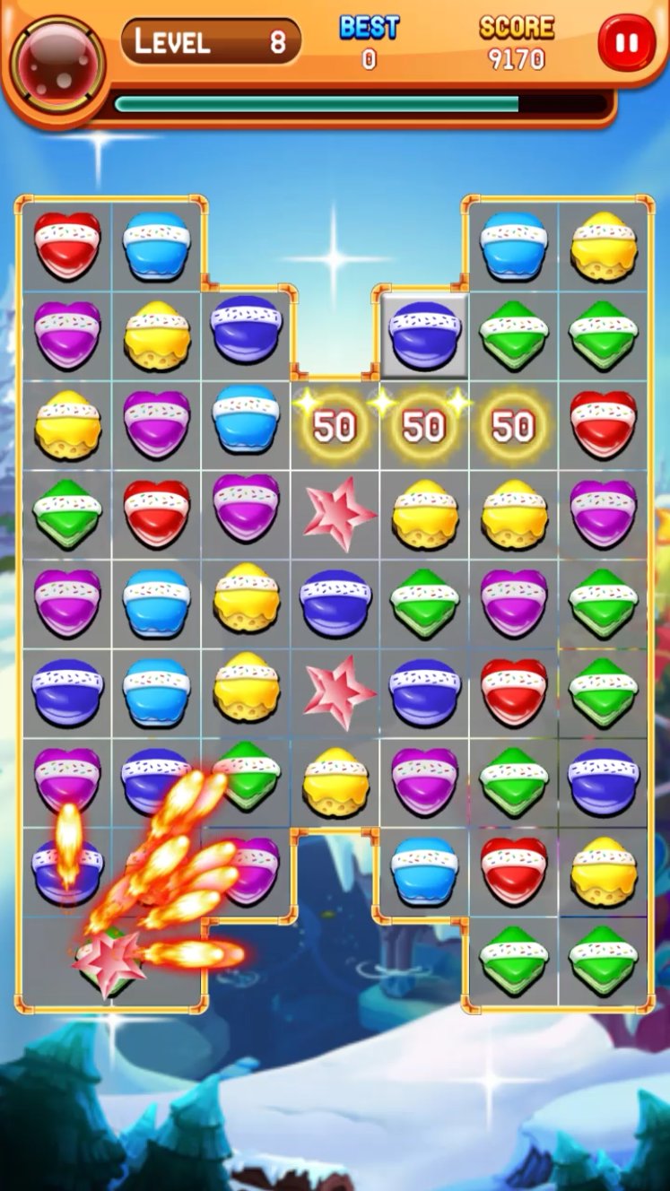 ★ The color-changing cookies can eliminate to any other colored cookies.