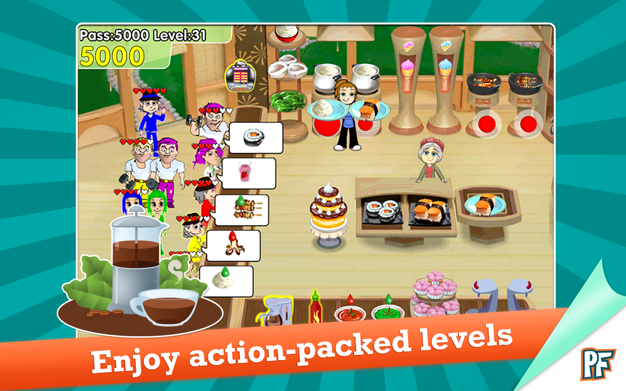 * Play a variety of uniquely fun gourmet restaurants, including the BONUS Potsticker Palace!