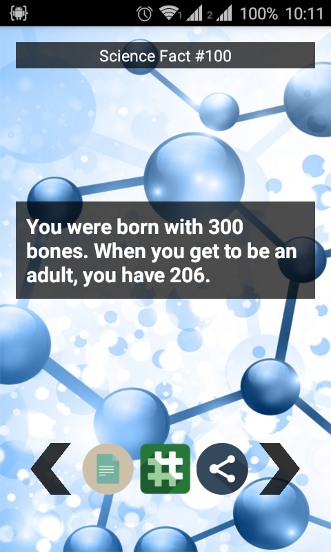 Do you want to impress your friends with your knowledge about science? If yes then this app is perfect for you. This app contains thousands of amazing science fact about multiple area in science.