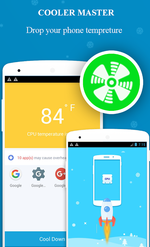 CPU cooler Master for Android in other words cool master cooling android phone and heat minimization algorithm is very effective to reduce CPU usage and increasing battery life for devices in heavy usage, reduce CPU usage and better performance in multimedia and game usage.