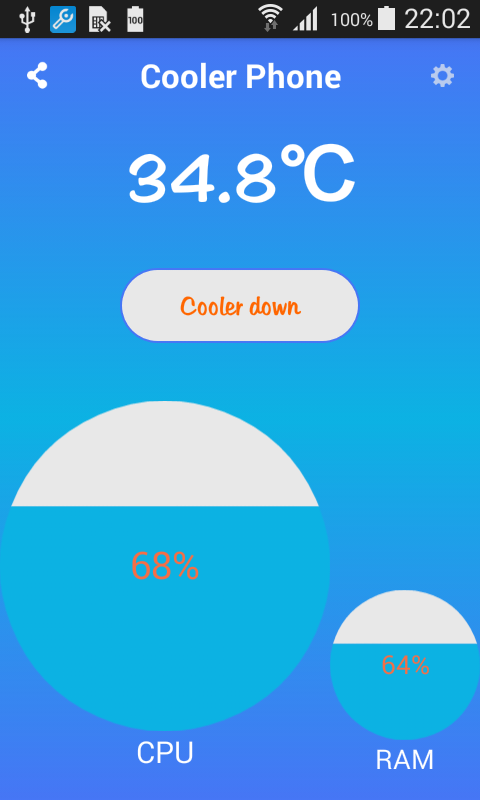 Cooler phone application to minimize CPU usage and temperature lower power.