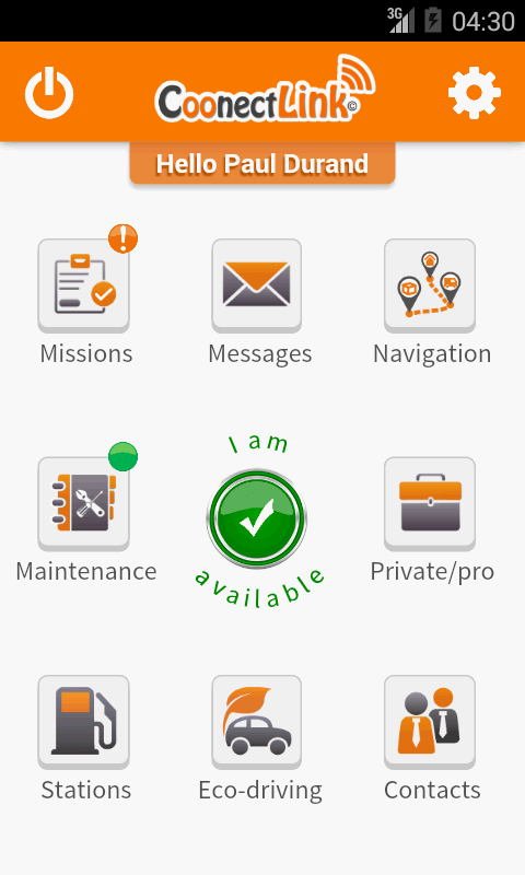 Complete app with missions management for drivers equipped with a CoonectLink case in the vehicle.