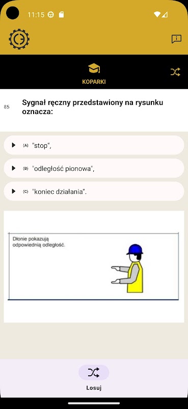 The Copa Edu application is intended for people applying for qualifications to operate excavators (397 questions) and backhoe loaders (393 questions). The set of questions corresponds to applicable requirements.