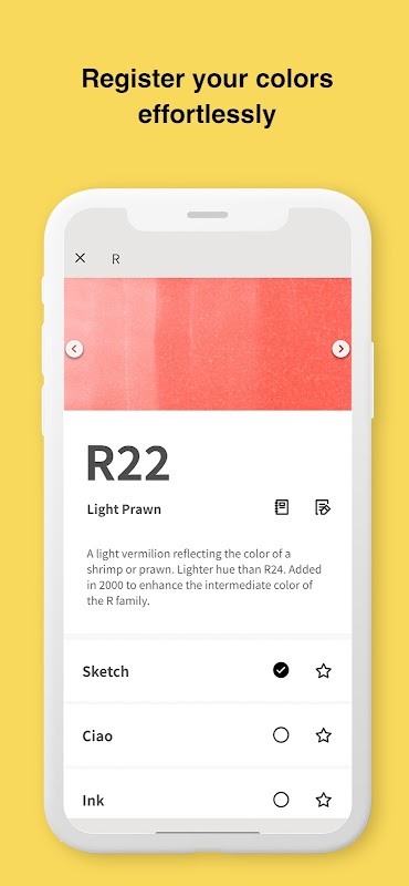 You can easily view your Copic products registered on the app from a color bar list, making it easier to find the next color you may be looking for.