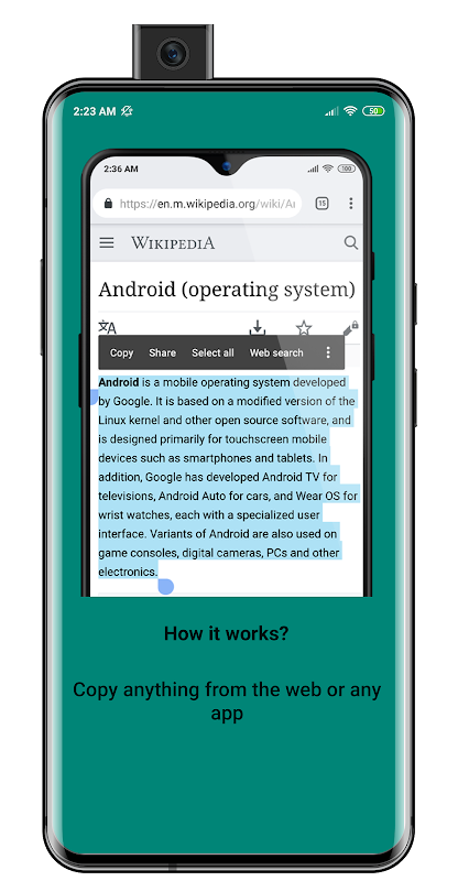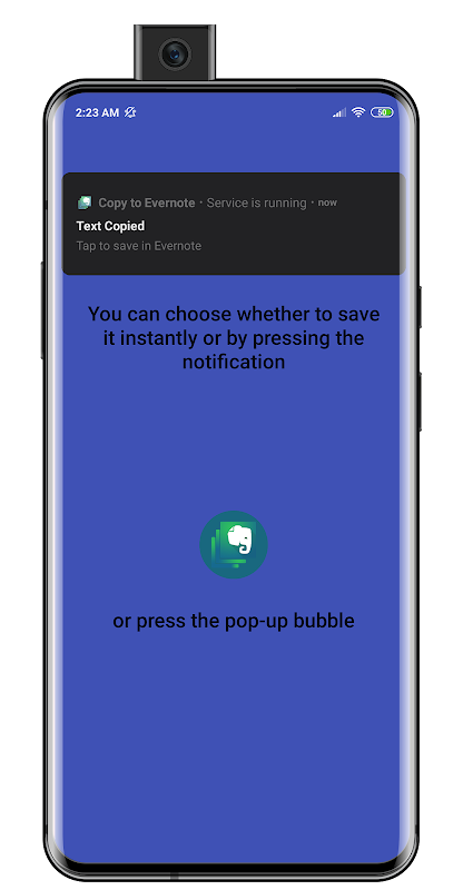 Just copy it and let the app save it to Evernote without even leaving the app or the web page you Browsing.