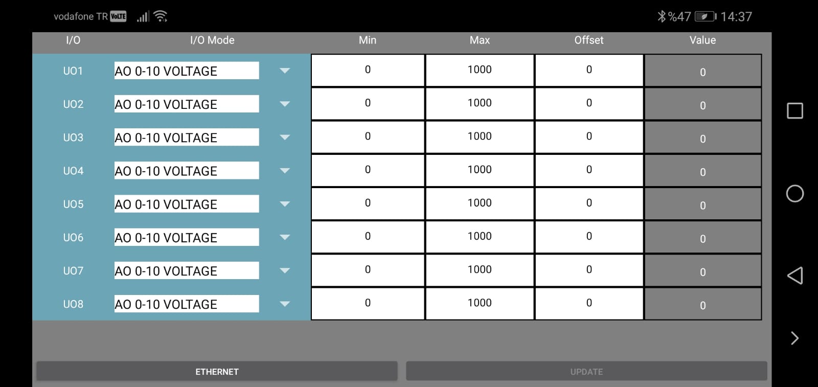 It is the interface where input-output mode settings and min-max values of Core brand modules are set. It provides a connection to the device via bluetooth with a QR code specific to each module.