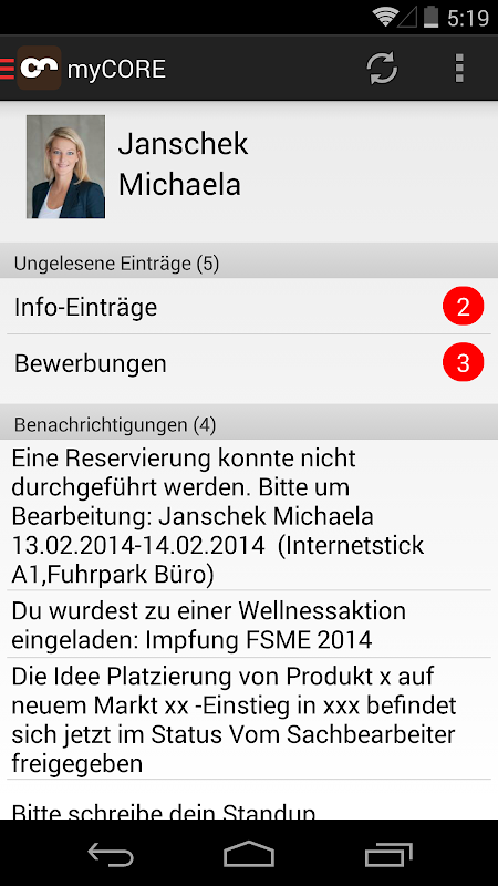 The CORE notification app informs you when there are any news or tasks for you in CORE.