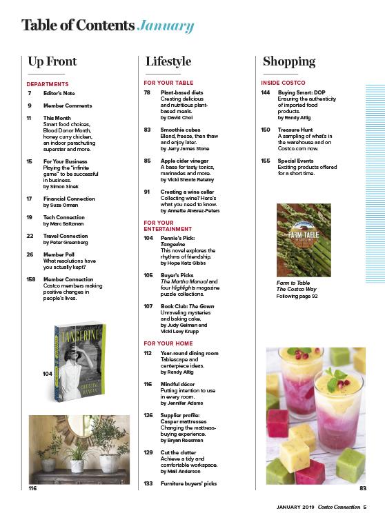 The Costco Connection is the monthly magazine published for members of Costco Wholesale and for others curious about the world of Costco. It is the largest-circulation monthly magazine in the United States, with over 13 million recipients. The Connection features timely articles on food, health, books, technology, travel, personal finance and small business. Columnists include Suze Orman, Marc Saltzman and small business expert Rhonda Abrams. A typical reader comment: “I regularly receive a number of ‘magazines’ from entities that I receive services from. Among others, this includes Costco, my homeowners association, my college alumnae office, my car manufacturer and my HMO. The only one I read in any depth is The Costco Connection.”