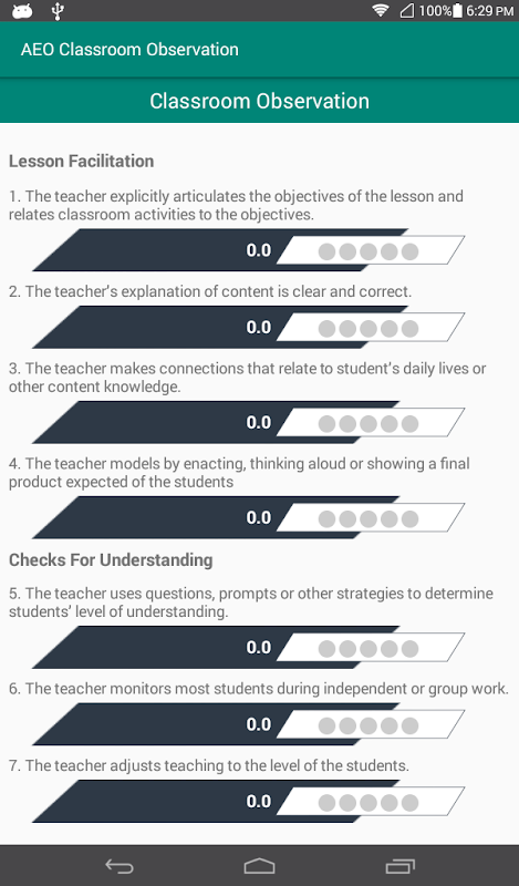 COT Classroom Observation is a tablet based monitoring form developed by PITB. This is used by Officials to evaluate teachers based on different performance indicators.