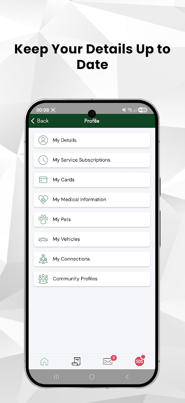 Trigger the emergency button and send instant notifications to your emergency contacts and linked armed response/control centre.