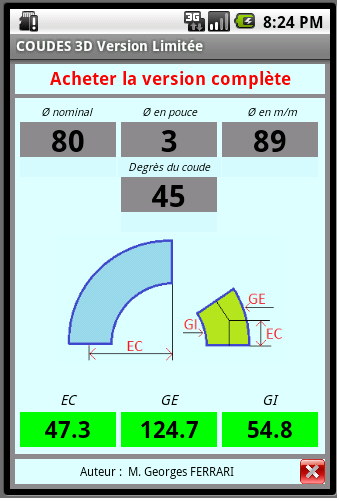 Pipe and Boiler field.Dimensions bends solder all degrees