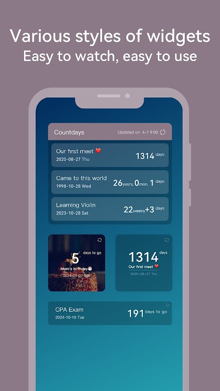 Count Days: calculation, recording, commemoration. Help you remember important days, don't forget.