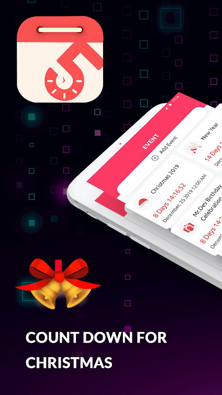Default count down for Christmas and New Year available in built. So you don't needs to worry about it. Celebrate this Christmas with Count Down app and start adding your upcoming events in year of 2020.