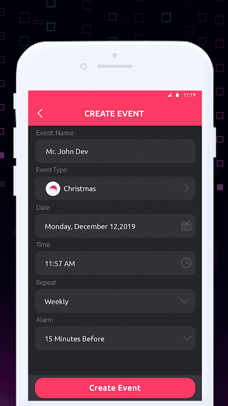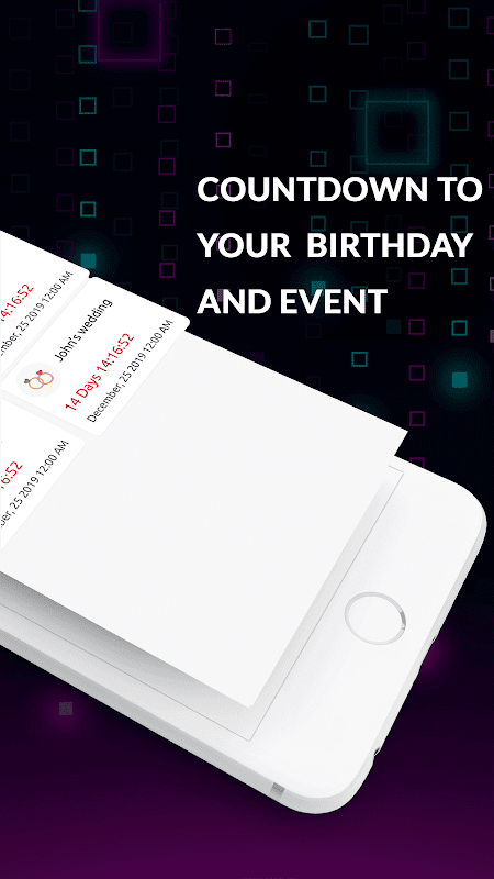 Set Count down to your upcoming events like your birthday, anniversary, upcoming movie, near by event like band's concert, your next vacation and more in style.