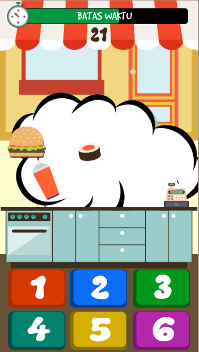 Bel istirahat berbunyi, anak-anak yang kelaparan langsung menyerbu Kantin sekolah. Mereka membentuk kelompok, mengantri secara rapi di depan counter Kantin. Bantu Ibu Kantin untuk melayani permintaan anak-anak ini! Tapi anak-anak ini tidak sabar, kamu harus bisa melayani mereka semua dalam batasan waktu tertentu.