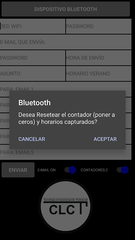 Application Compatible with Car Counter Card, created to count events, it also creates a database with the times in which the event is presented, a counter for one Direction, 2 Counters for Two Directions, or a counter for both senses, this information is sent by the Car Counter card Via email with a maximum of 5 addresses, at the specified time, after this it restarts the cycle for a new take of events.